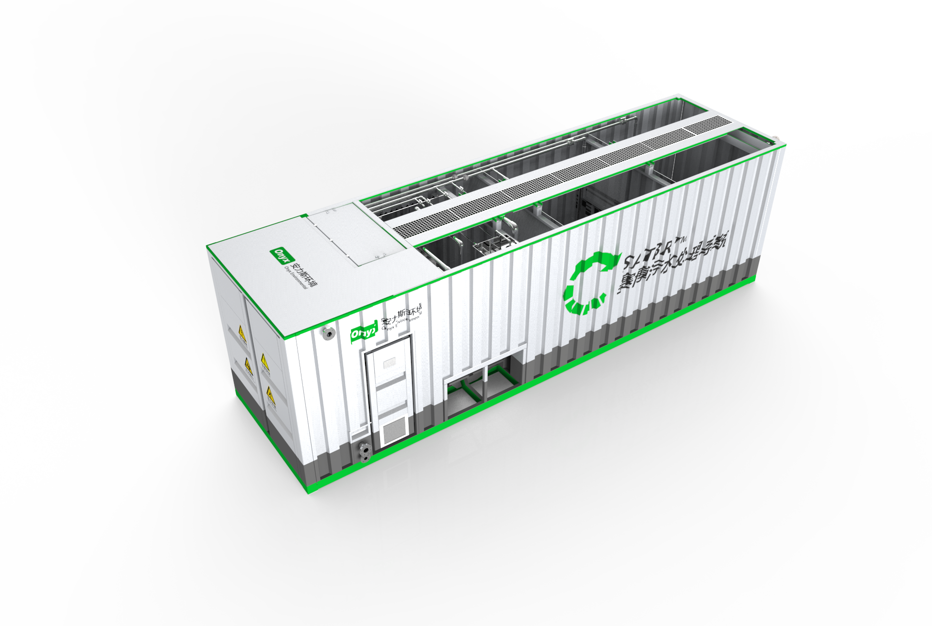 ONYX-賽博搪瓷一體化污水處理設(shè)備內(nèi)置A/O+MBBR生化區(qū)、沉淀區(qū)、濾布過濾、紫外消毒以及設(shè)備間區(qū)。污水經(jīng)過集裝箱處理后即可達(dá)標(biāo)排放(城鎮(zhèn)一級(jí)A出水標(biāo)準(zhǔn)或以上)。采用一體化設(shè)計(jì)和安裝,特別適用于應(yīng)急項(xiàng)目、施工周期短的項(xiàng)目,并減少土建施工成本。